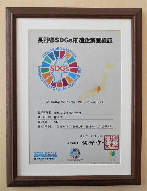 第4期長野県SDGs推進企業として登録を頂きました
