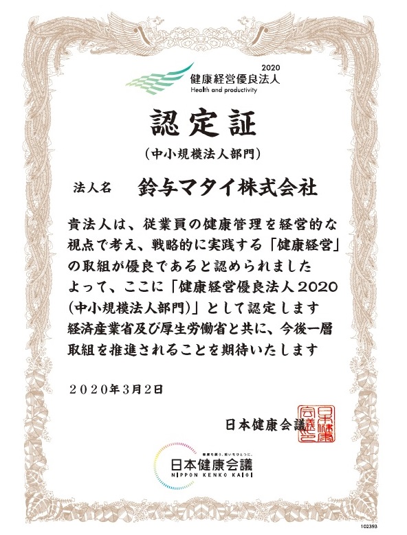 「健康経営優良法人2020(中小規模法人部門)」に認定されました