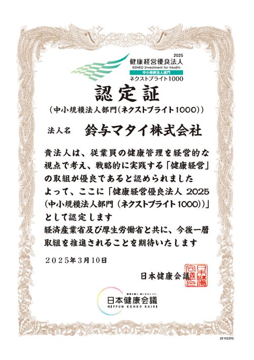 2025.03.12「健康経営優良法人2025(中小規模法人部門(ネクストブライト1000))」に認定されました