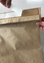 「封緘」・・・紙袋に内容物を充填した後、開口部をミシンや糊で閉じる作業。