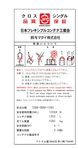 JFCラベルは、日本フレキシブルコンテナ工業会メーカーがつけられる