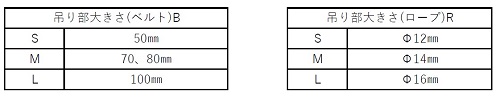 吊り部分の大きさは、S、M、Lにて表します。