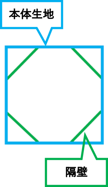 隔壁とは、角型のフレキシブルコンテナの内部4か所に