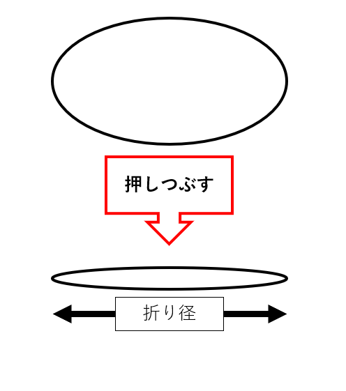 折り径とは、フレキシブルコンテナを平らに押しつぶした状態の長さを指します。