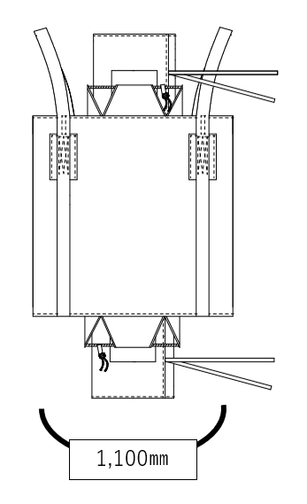 上の図面のような丸型、直径:1,100㎜のフレキシブルコンテナの場合、