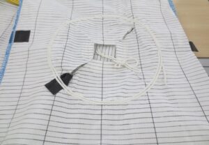 写真をご覧いただくと、フレキシブルコンテナの生地(原反)の縦・横に黒い繊維が