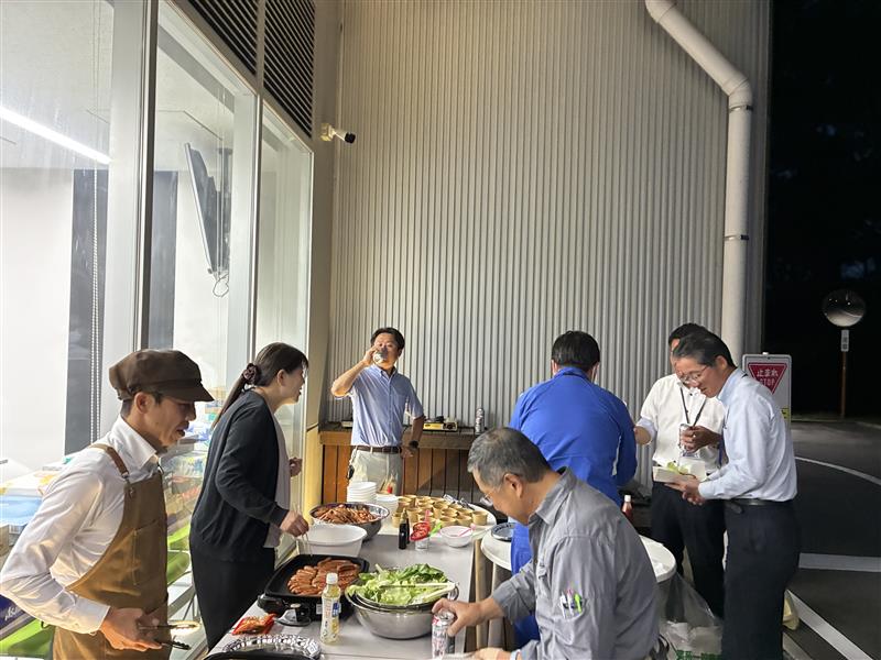 今年のメニューはホットドッグと豚汁、おにぎりやベビーカステラも加わりボリューミーな内容でした。抽選会では多くの社員の方に景品が当たりました。