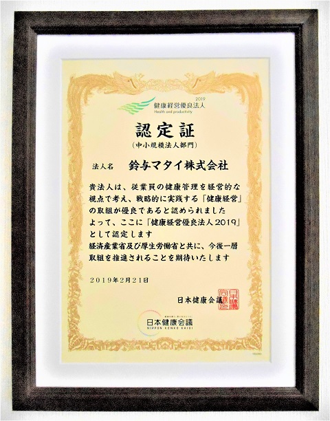 弊社でも社員が健康的に仕事に取組むことができる環境整備を進めていますが、この度「健康経営優良法人2019」の認定を受けることできました。