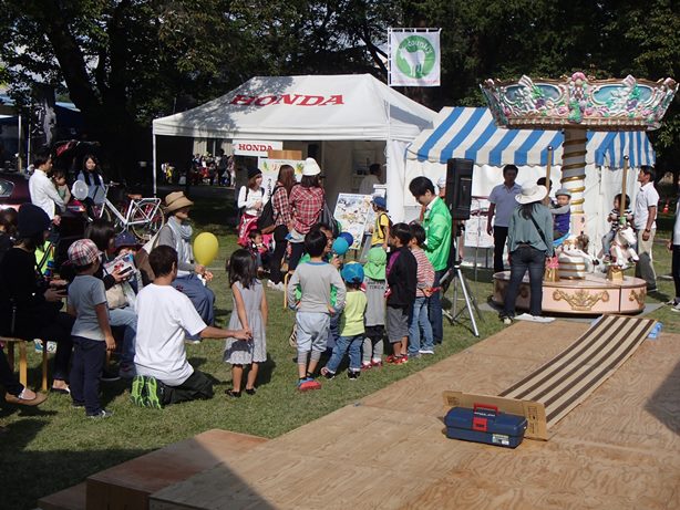 今年は、「もっと!エコする心 科学するコ・コ・ロ」のテーマのもと、HONDA様の協力でFCV(燃料電池自動車)とFCVで発電した電気で動くメリーゴーランドが登場!