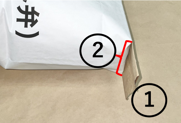 充填後、弁口を袋の中に折り込むことで封緘できます。